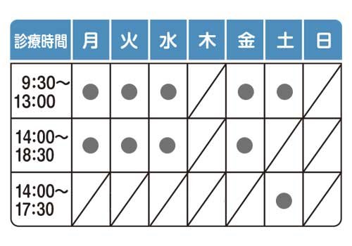 9:30~ 13:00、14:00~ 18:30、土14:00~17:30