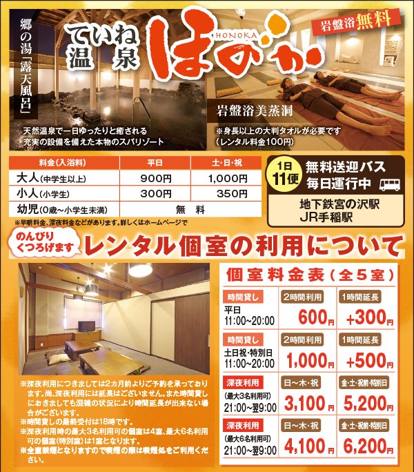レンタル個室の利用について~ふりっぱー10月号掲載中!~ | ていね温泉ほのか