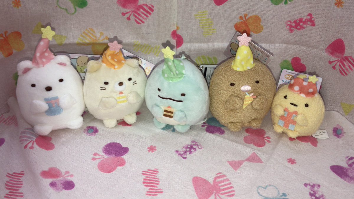 すみっコぐらしのマスコットが入荷しました。パーティー帽子を被って、プレゼントやケーキなどを持っていて楽しそうですね #すみっコ... [ワンダーシティ札幌 プラボ札幌西町店【Twitter】] | ワンダーシティ札幌 プラボ札幌西町店