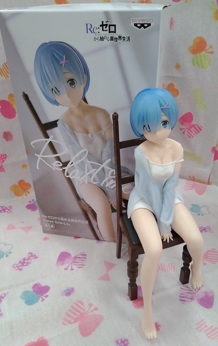 本日よりリゼロのキャンペーンが開催! 同時にナムコ限定の景品も入荷しました。まずはレムのフィギュアです。背面の箱と比べてわかるように、椅子に座った状態でこのサイズですので、結構大きめなフィギュアとなっております。
