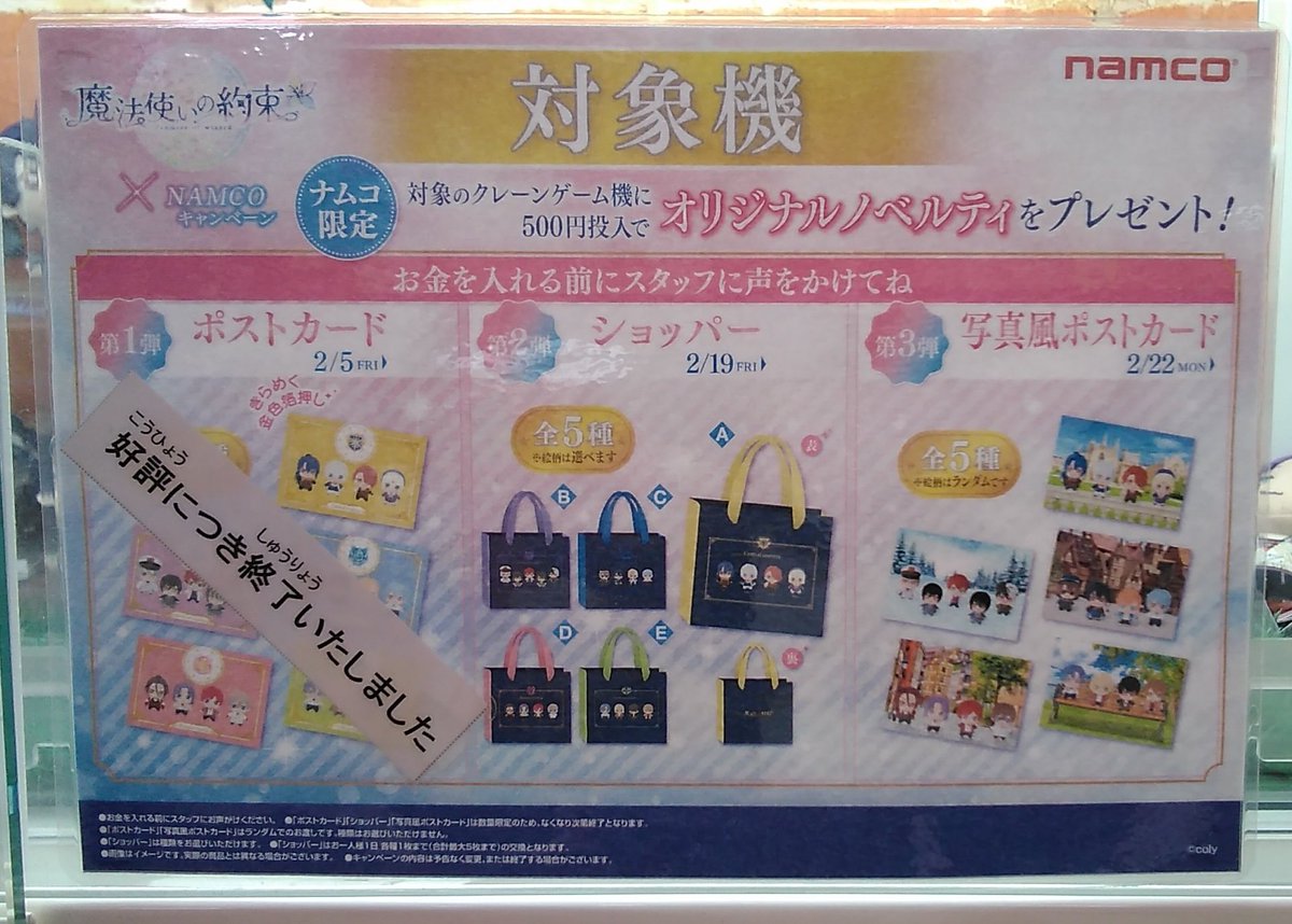 魔法使いの約束キャンペーンノベルティ第2弾が本日より開始です! 残念ながら限定景品のポーチは当店に入荷しませんが、ノベルティ目的であれば他の店舗より競争率低いですよ。なお、多くのお客様へお渡しできるよう、ノベルティの交換はお一人様各種1日一枚までとさせて頂いております。