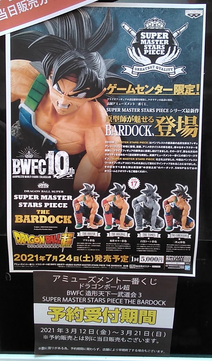 本日より「アミューズメント一番くじ ドラゴンボール超 BWFC 造形天下一武道会3 SUPER MASTER STARS PIECE THE BARDOCK」の事前予約受付開始です! 3月21日(日)までの期間限定となっております。確実に入手されたい方はご予約をお勧めします!