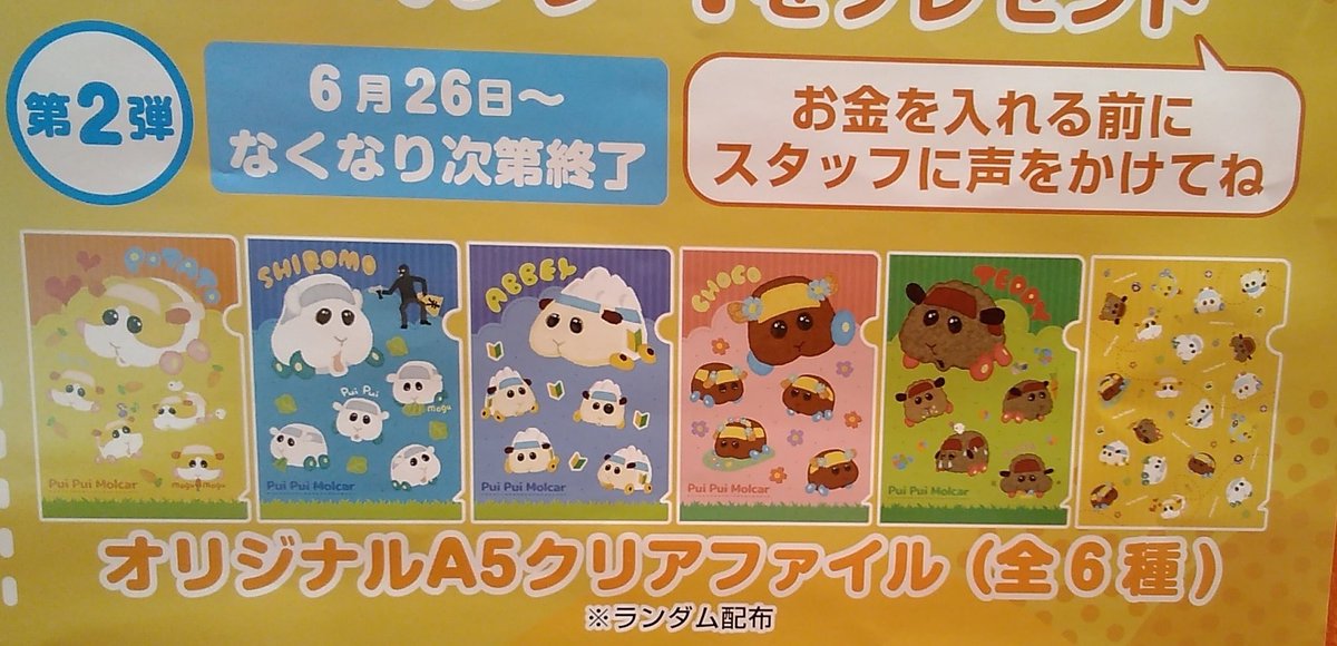 モルカーキャンペーンは本日よりノベルティ第2弾も開始です。第2弾はオリジナルA5クリアファイルで全6種類です。モルカー景品をプ... [ワンダーシティ札幌 プラボ札幌西町店【Twitter】] | ワンダーシティ札幌 プラボ札幌西町店