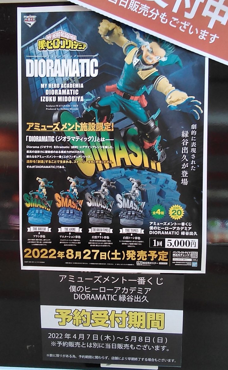 「アミューズメント一番くじ 僕のヒーローアカデミア DIORAMATIC緑谷出久」の事前予約が昨日より開始しています。5月8日までの期間限.... [ワンダーシティ札幌 プラボ札幌西町店【Twitter】]