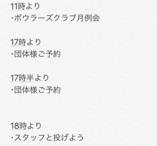 皆さんおはようございますサンコーボウルの1日の予定をお知らせ致します