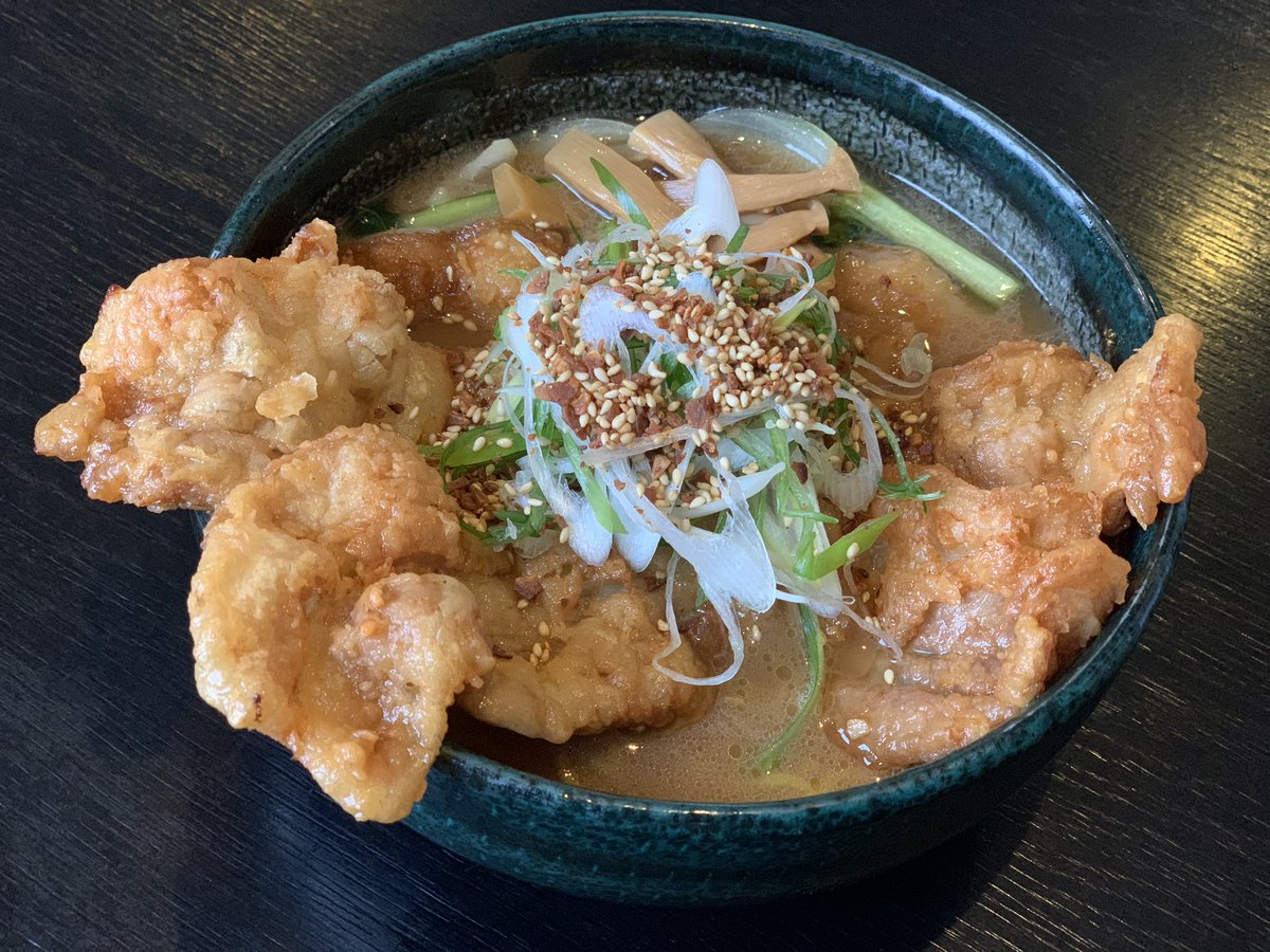 香ばし塩ざんぎらぁめん🍜何度かお客様と話していた事があったのですが初の試食😎!塩ダレを使用しているので合わない訳がない🤤🔥香... [らぁめん銀波露 札幌手稲店【Twitter】]