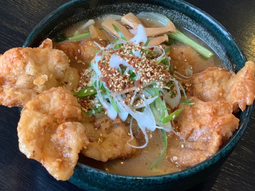 香ばし塩ざんぎらぁめん🍜何度かお客様と話していた事があったのですが初の試食😎!塩ダレを使用しているので合わない訳がない🤤🔥香... [らぁめん銀波露 札幌手稲店【Twitter】]