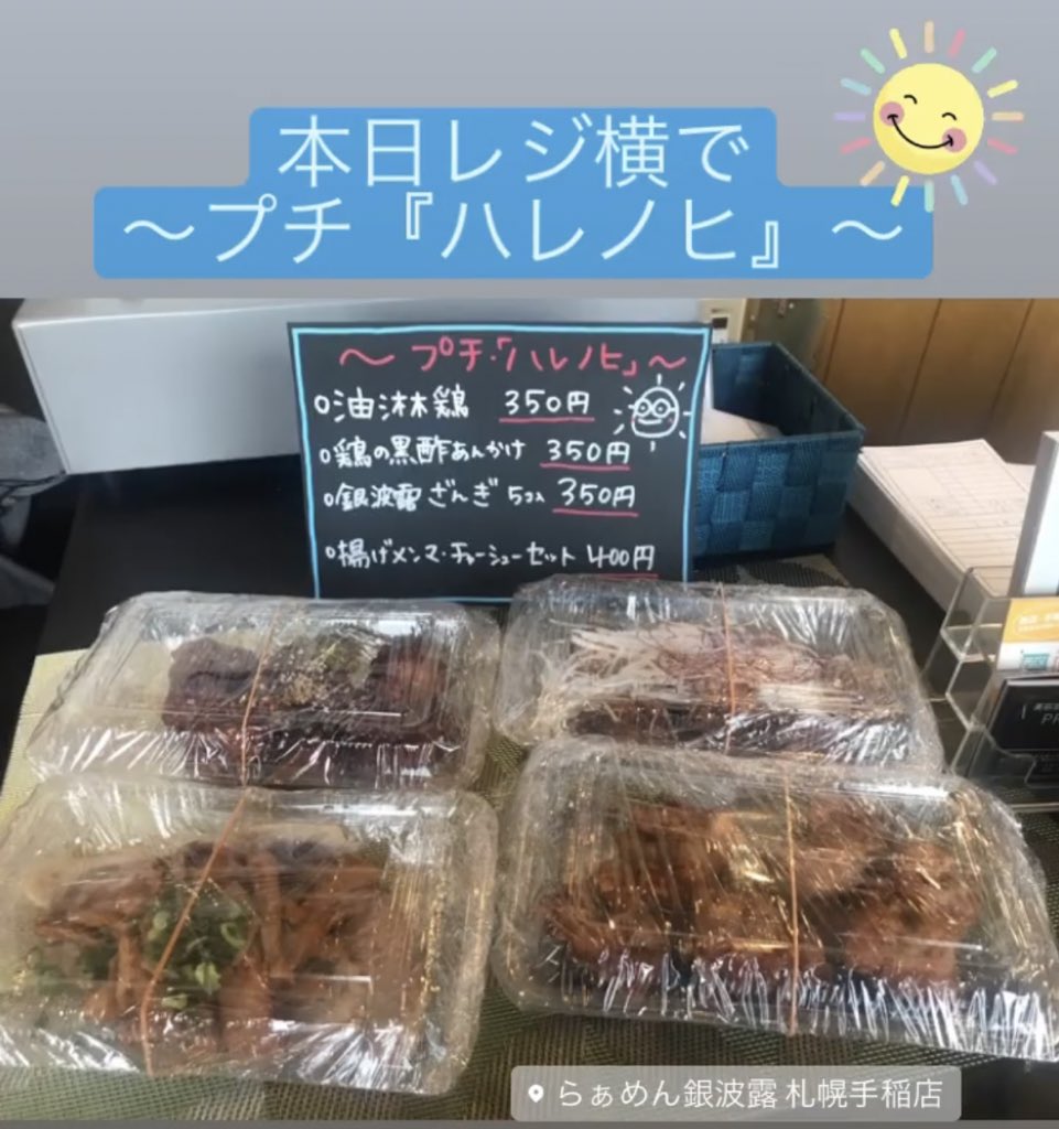 本日は銀波露手稲店の店内にてプチハレノヒを開催してます🌈ぜひご利用ください☀️ [らぁめん銀波露 札幌手稲店【Twitter】] | 銀波露 札幌手稲店