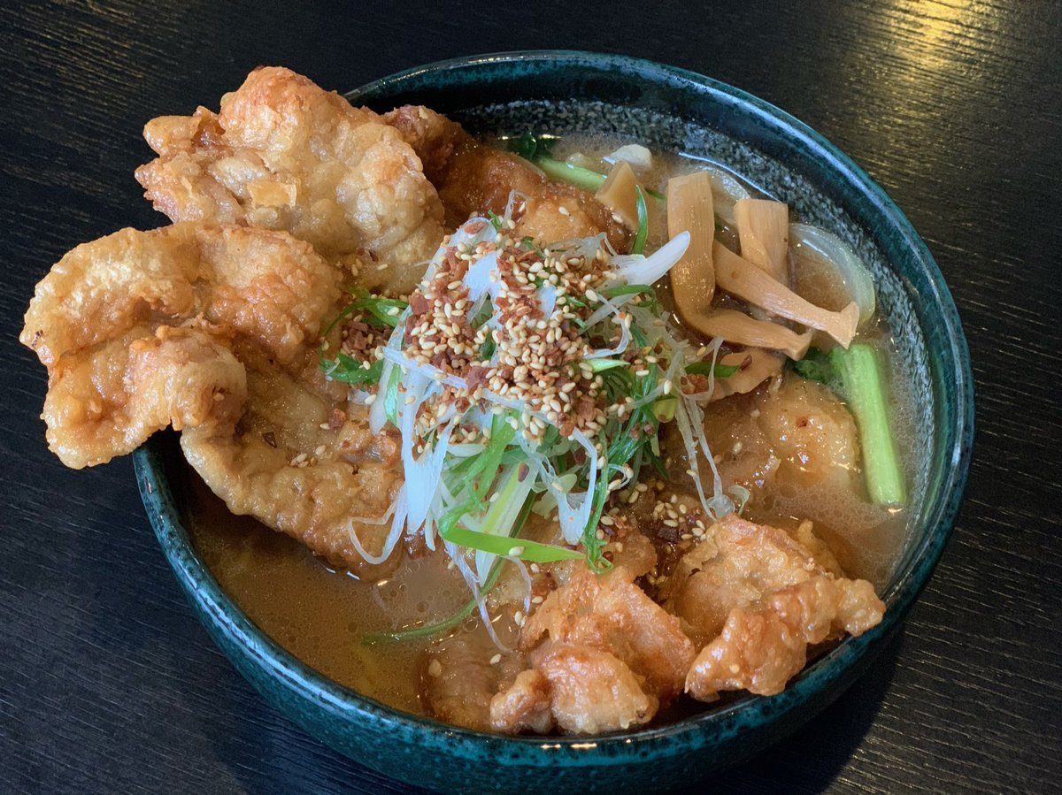 香ばし塩ざんぎらぁめん🍜何度かお客様と話していた事があったのですが初の試食😎!塩ダレを使用しているので合わない訳がない🤤🔥香... [らぁめん銀波露 札幌手稲店【Twitter】]