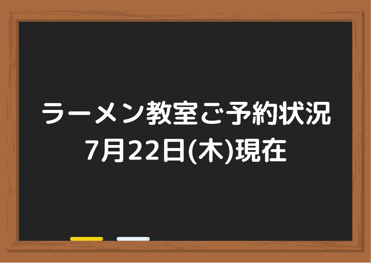 ラーメン教室にたくさんのご予約ありがとうございます🙏下記の通りになっております😎!ラーメン教室予約締め切り日7月23日(金)7月... [らぁめん銀波露 札幌手稲店【Twitter】]