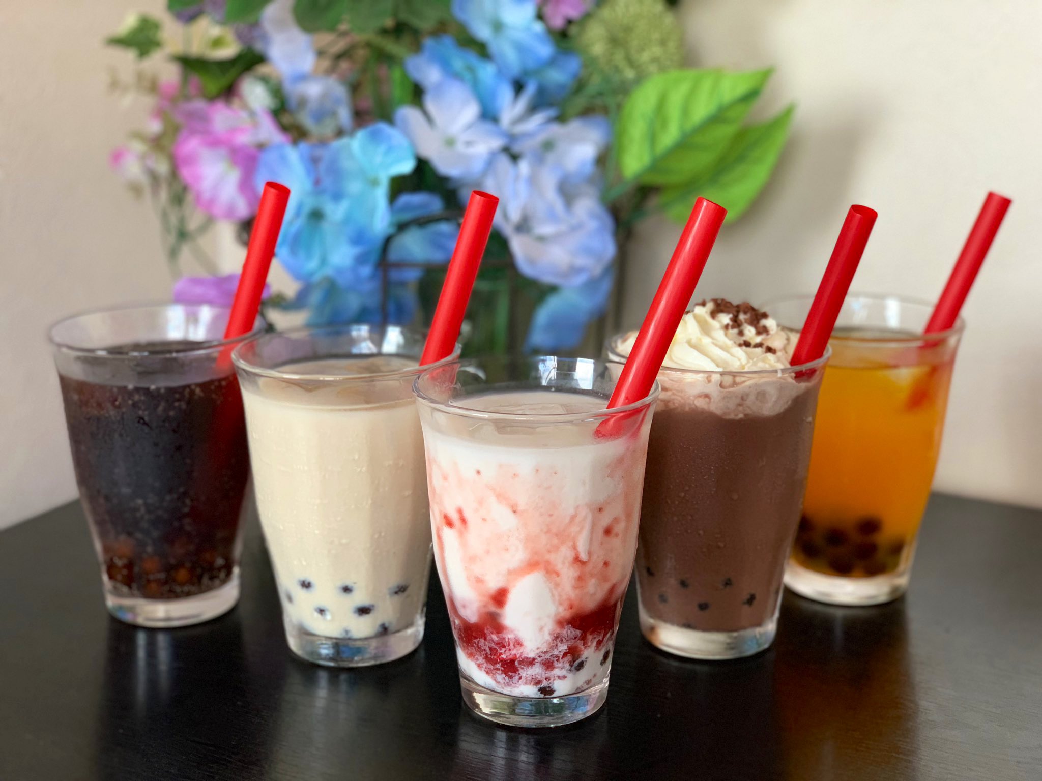 銀波露手稲店限定でタピオカ販売中! 普通のことを普通にやっていてもおもしろくない!と思い売り始めたタピオカ今ではテイクアウトのみで買いに来ていただけるまでに認知度が上がってきました! 甘いものが好きな店長が改良を重ねて作り上げた5種類