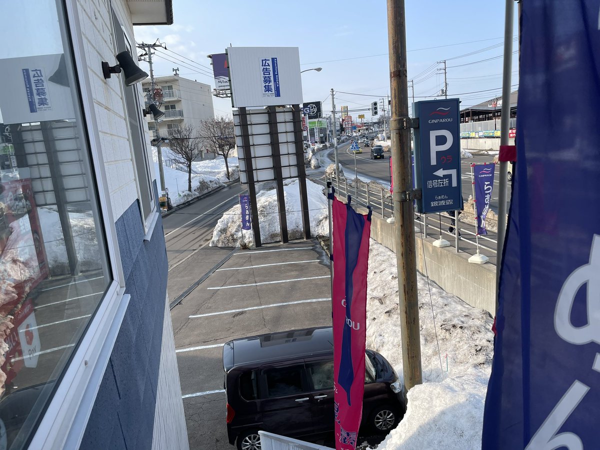 おはようございます!!お店の駐車場の線を応急処置ではありますが引きました😎よねたは鉄のスコップで雪を溶かすのを頑張っており... [らぁめん銀波露 札幌手稲店【Twitter】] | 銀波露 札幌手稲店