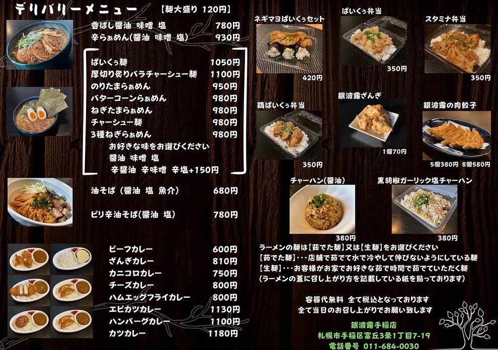 銀波露手稲店デリバリー 12:00〜16:00
