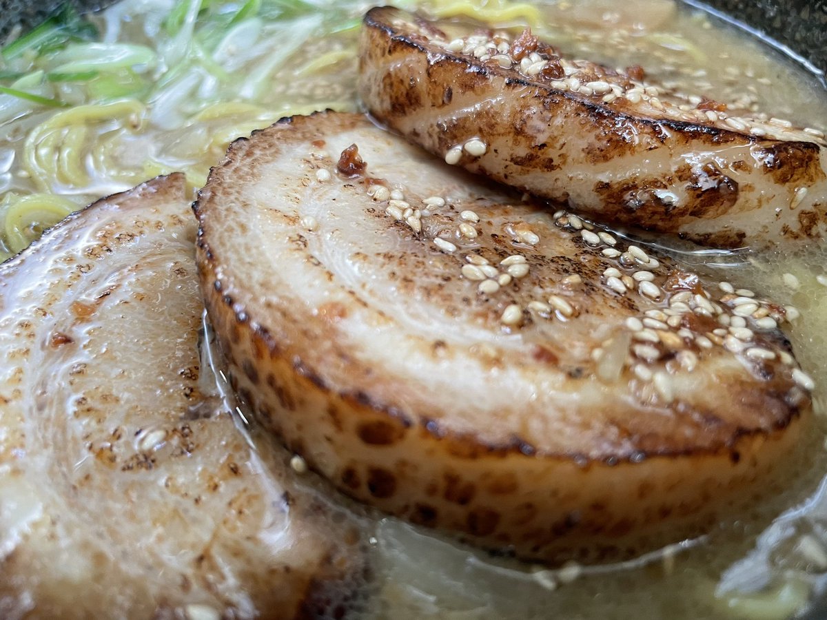 【新時代個性派拉麺】の代表メニューは『ぱいくぅ麺』です☺️🍜ぱいくぅとは…味付けをした豚バラ肉を油で揚げた銀波露オリジナルメニ... [らぁめん銀波露 札幌手稲店【Twitter】]