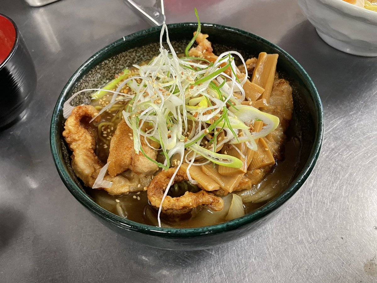 香ばし塩ざんぎらぁめん🍜何度かお客様と話していた事があったのですが初の試食😎!塩ダレを使用しているので合わない訳がない🤤🔥香... [らぁめん銀波露 札幌手稲店【Twitter】]
