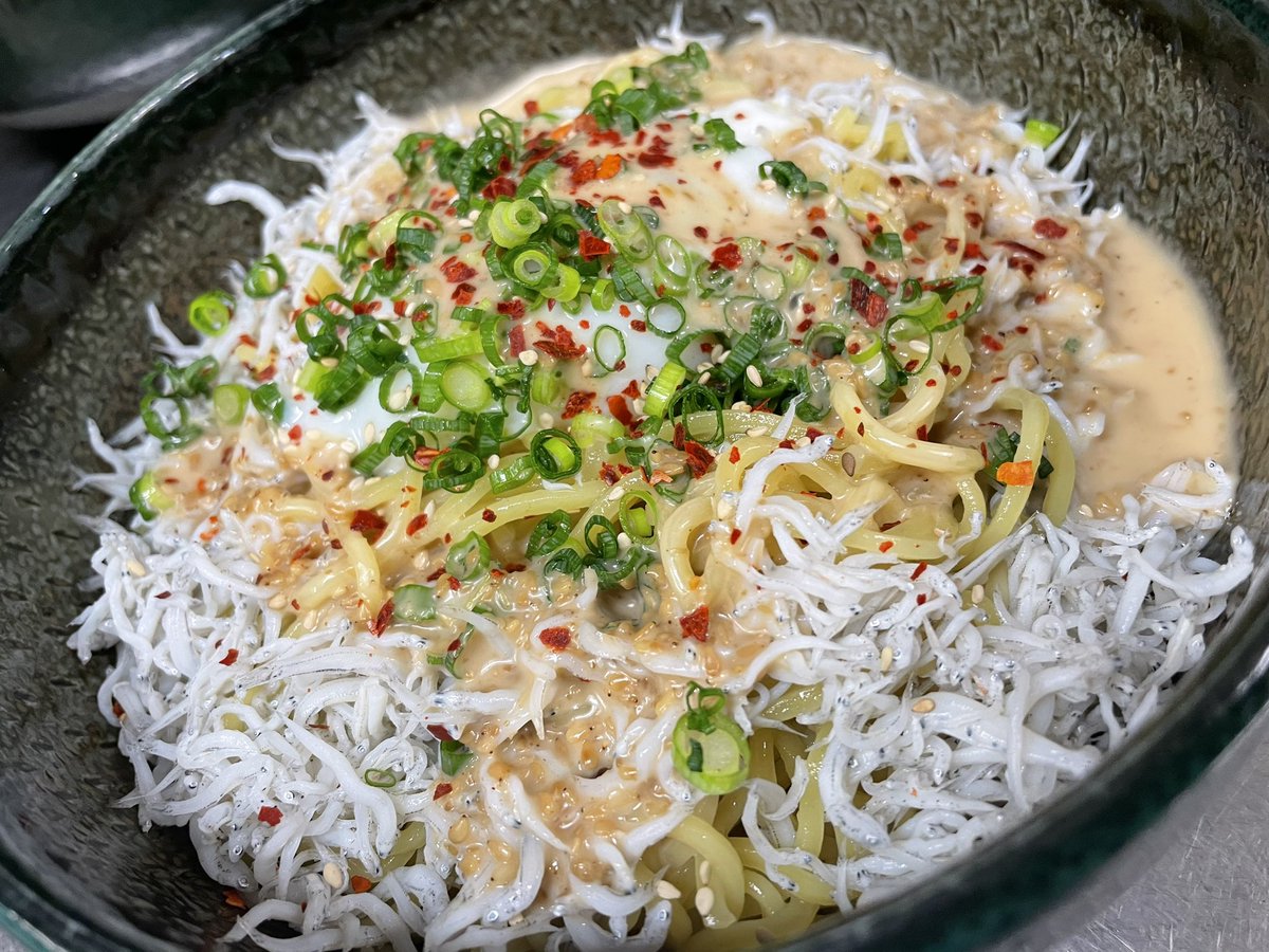 今回はしらすと温玉を入れたラーメンサラダを作りました🍜