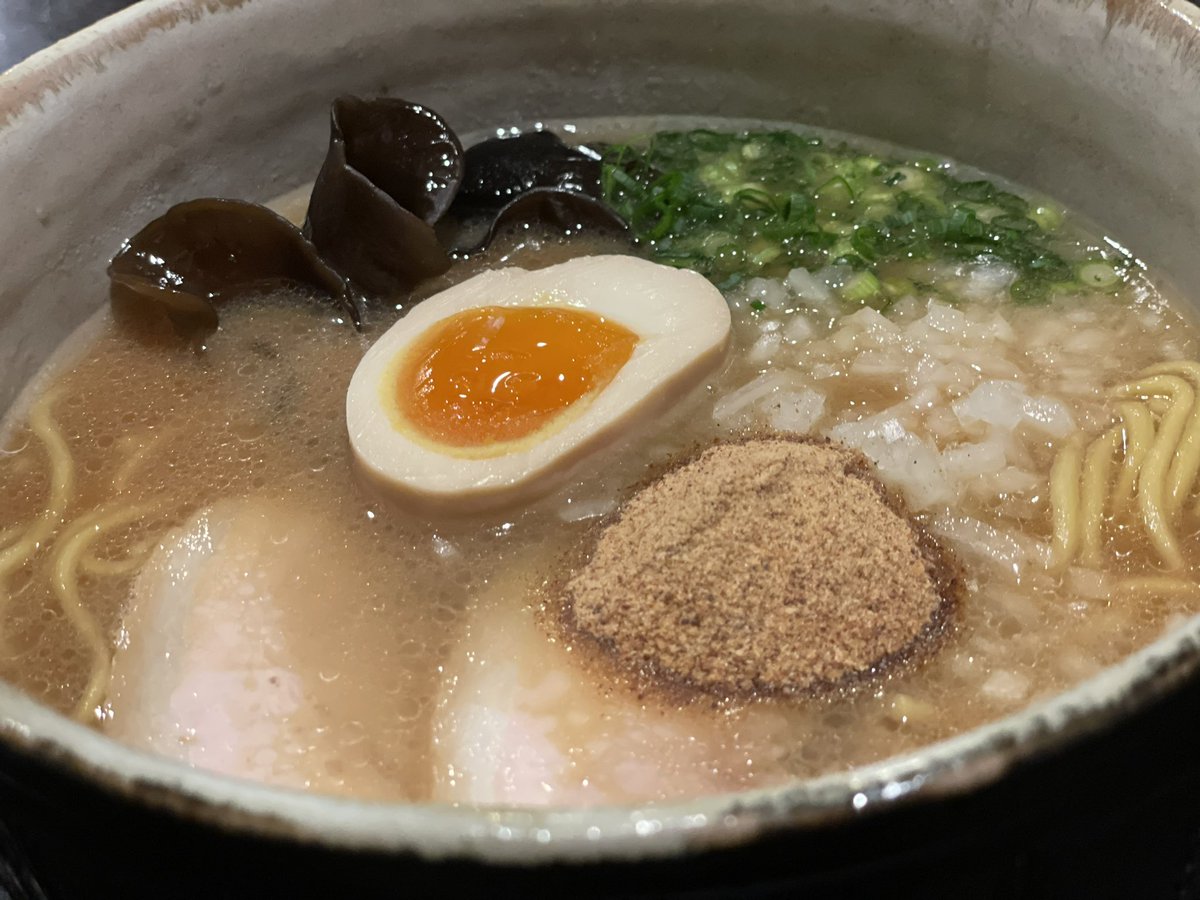煮干し風味の醤油ダレとまぐろ節パウダーで風味深いラーメンです!