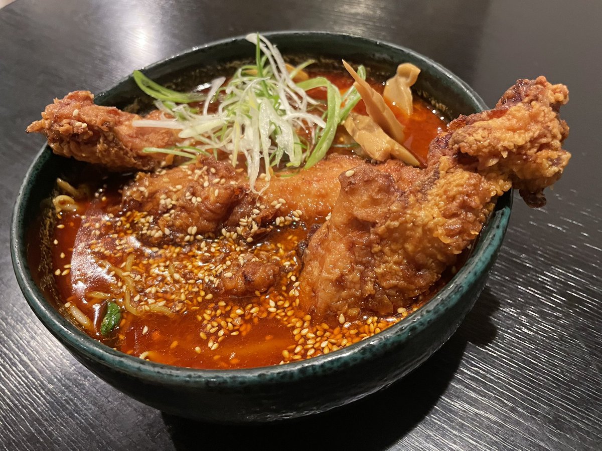 香ばしいクセになる辛らぁめん醤油と香ばしい鶏ぱいくぅが一緒になった一杯🍜