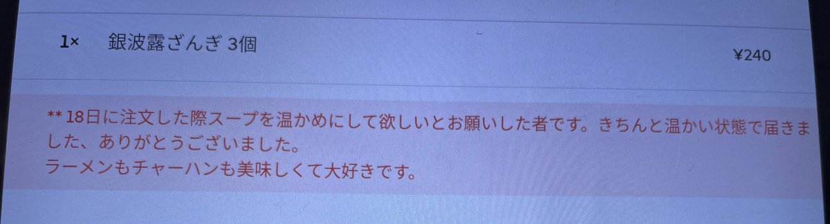 大寒波の中、こんな温かい言葉をもらいました🥹そしてたくさんのご来店ありがとうございます😭!まだまだ頑張ります🔥 [らぁめん銀波露 札幌手稲店【Twitter】]