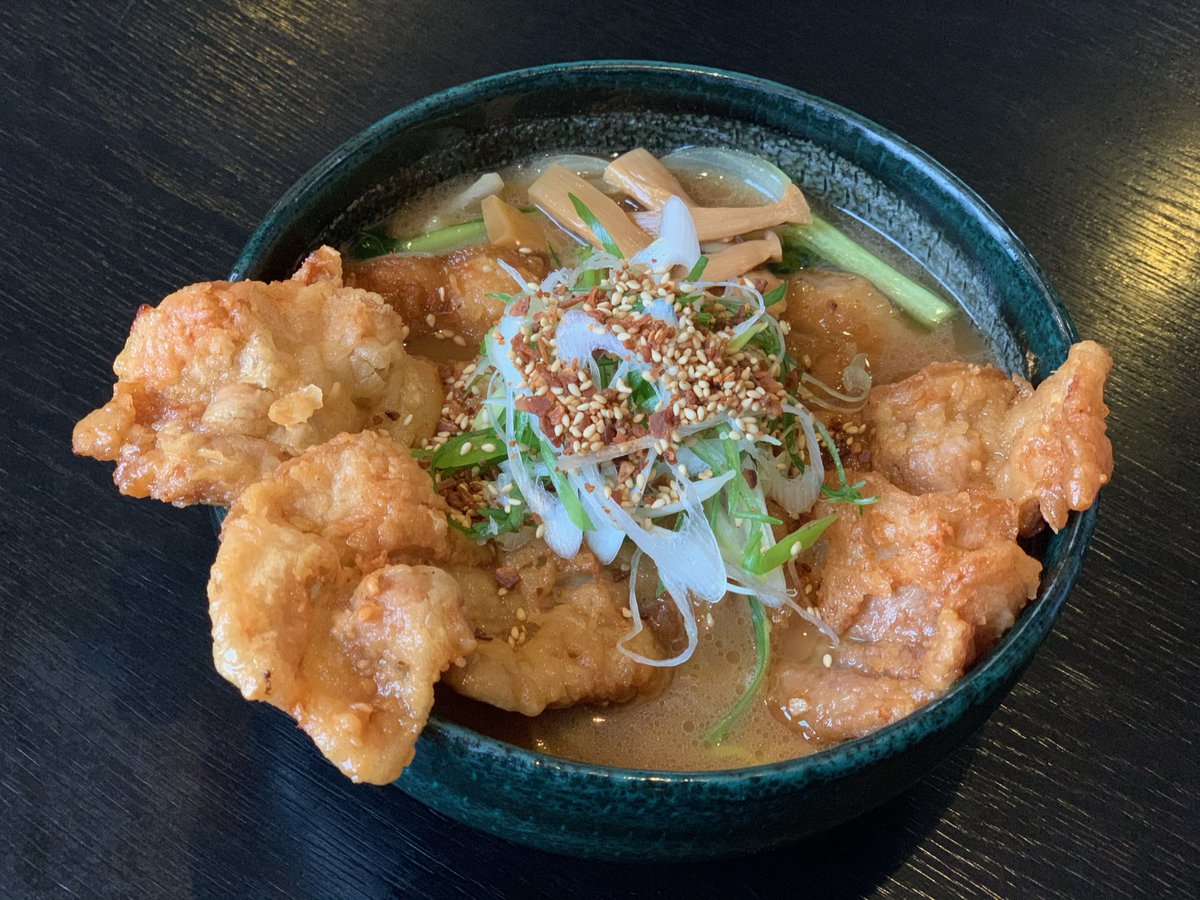 香ばし塩ざんぎらぁめん🍜何度かお客様と話していた事があったのですが初の試食😎!塩ダレを使用しているので合わない訳がない🤤🔥香... [らぁめん銀波露 札幌手稲店【Twitter】]