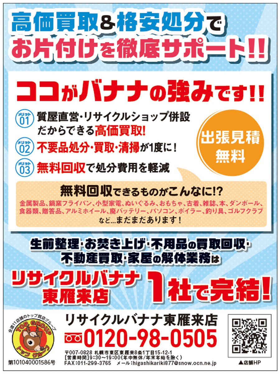 出張見積無料 高価買取&格安処分でお片付けを徹底サポート!! | リサイクルバナナ東雁来店