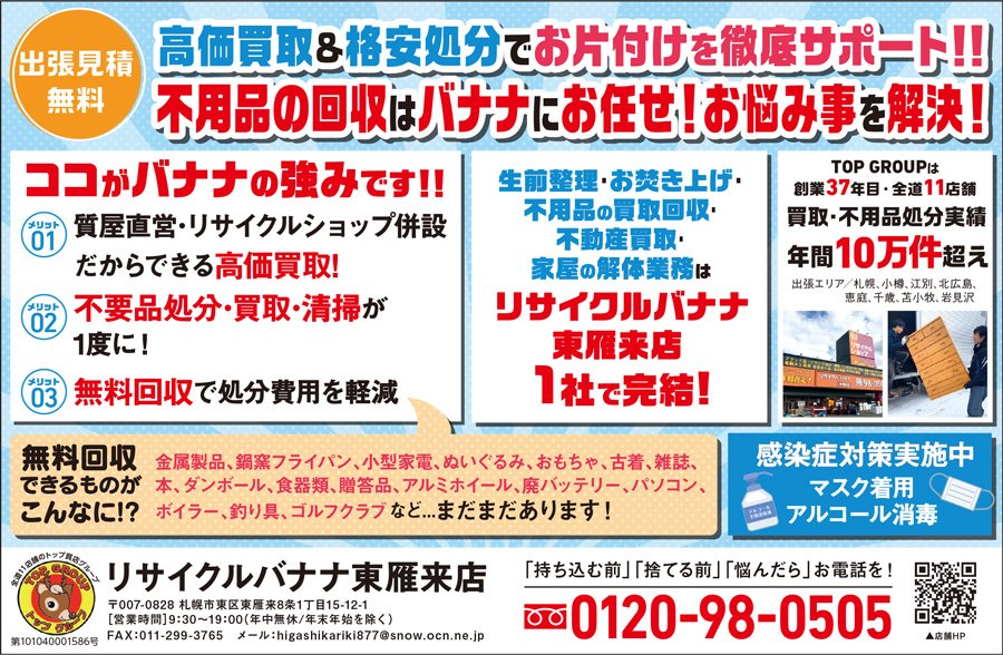 出張見積無料 高価買取&格安処分でお片付けを徹底サポート!! | リサイクルバナナ東雁来店
