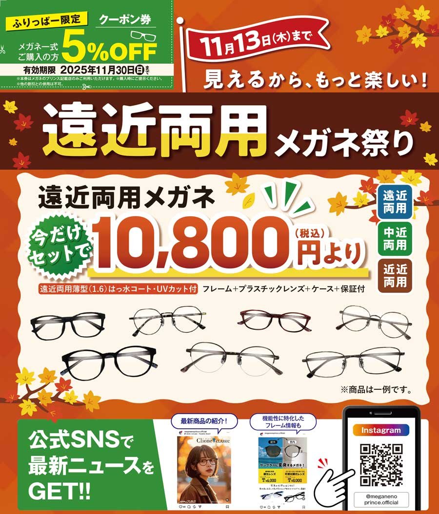 見えるから、もっと楽しい!遠近両用メガネ祭り【11月13日(木)まで】 | メガネのプリンス