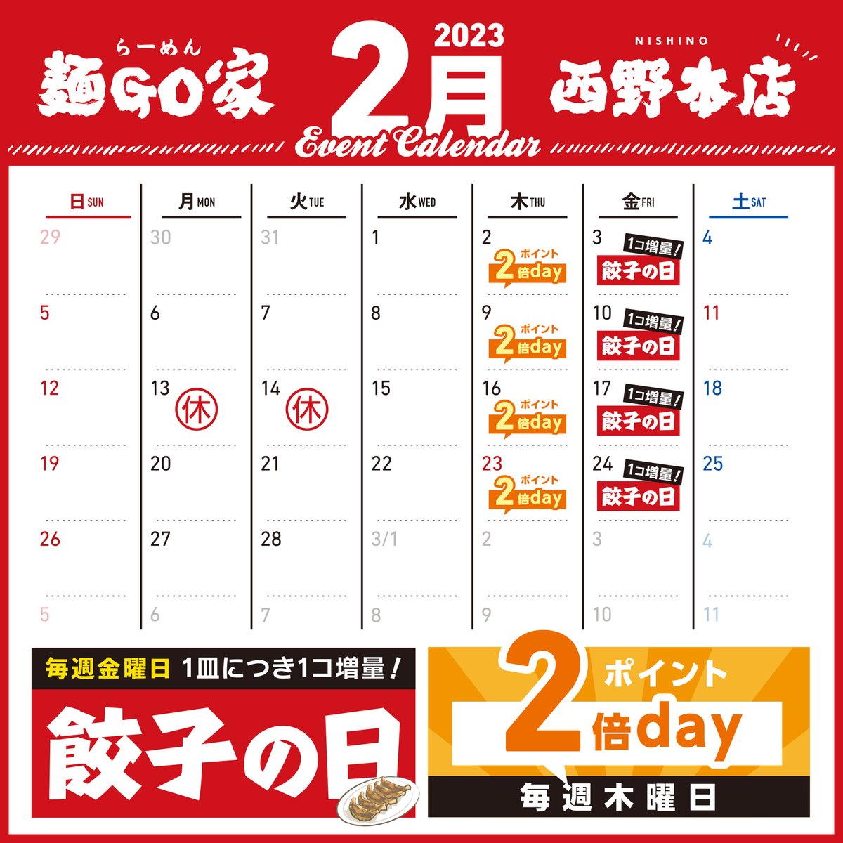 📅 2月カレンダー 📅❖ 今月の限定メニュー ご好評につき 【 #鶏白湯カレーラーメン 】 販売継続!!... [らーめん・麺GO家(めんごや) 西野店【Twitter】] | らーめん 麺GO家西野本店