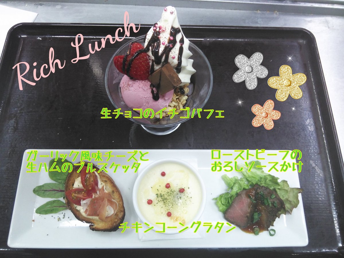 こんにちは😌本日のリッチランチ前菜&デザートのご紹介です。🌷ローストビーフのおろしソースかけ🌷チキンコーングラタン🌷ガーリッ... [ベビーフェイスプラネッツ 札幌宮の森店【Twitter】]