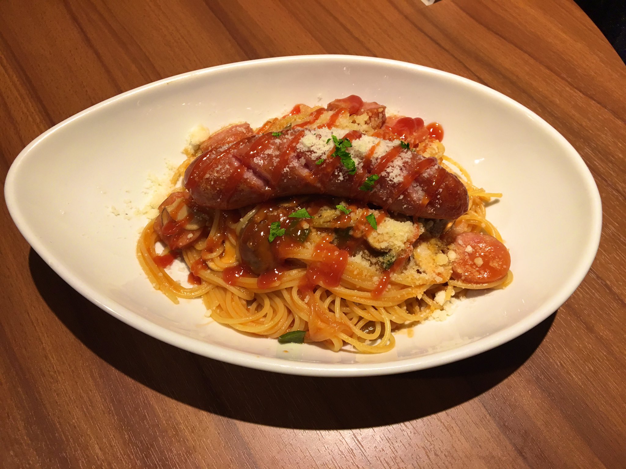 久しぶりの賄いシリーズ みんな大好きナポリタン ソーセージがジューシー pic.twitter.com/K2aCfC75QV