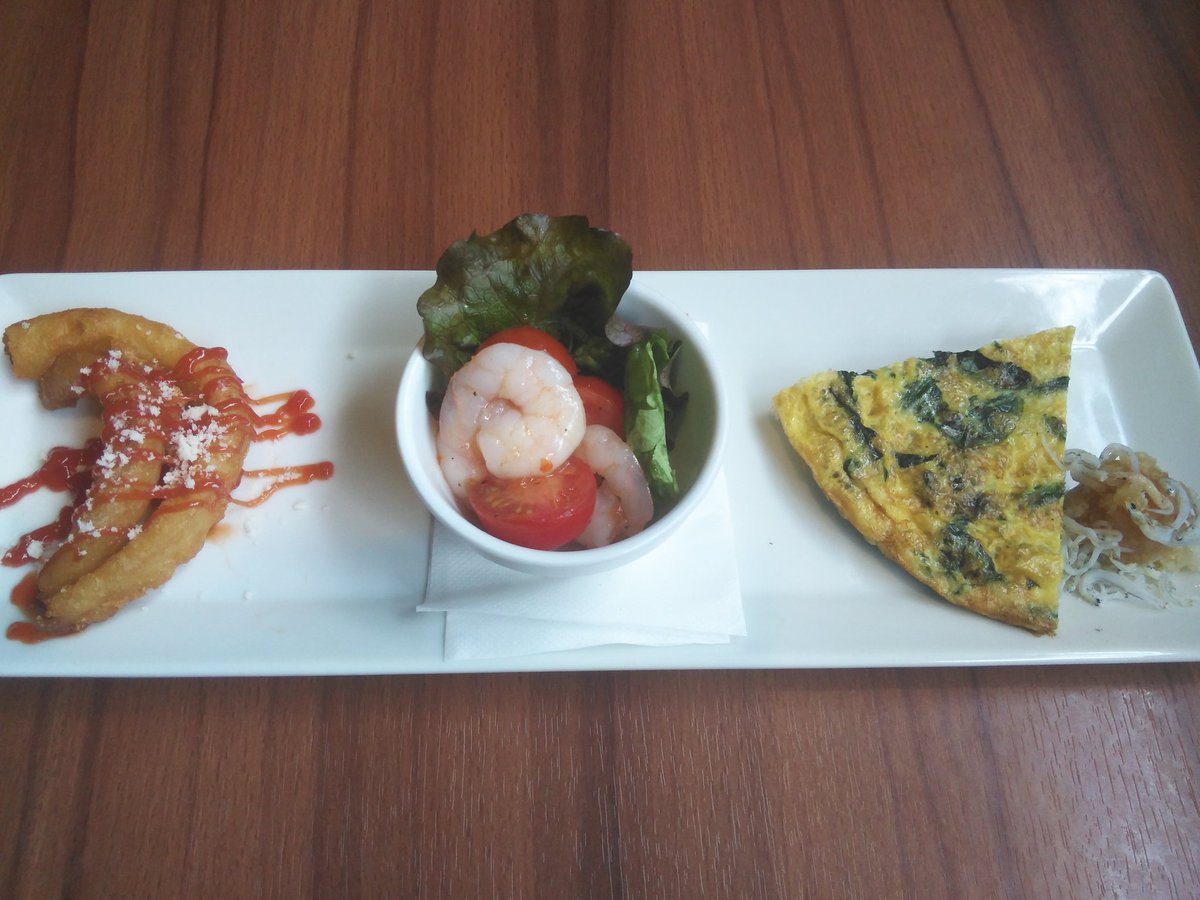 こんばんは💫本日のリッチランチ前菜はこちらです🧑🍳🏂ほうれん草のオープンオムレツ🏂海老のカルパッチョ🏂オニオンフライ明日もご.... [ベビーフェイスプラネッツ 札幌宮の森店【Twitter】] | ベビーフェイスプラネッツ 札幌宮の森店