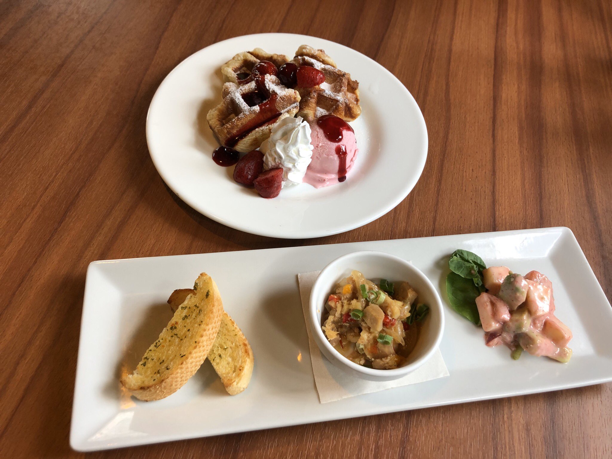 おはようございます〜今日のリッチランチはこちら!! 今日のデザートはパフェではなく 人気のクロワッサンワッフルです