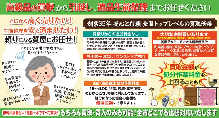高級品の買取から引越し、遺品生前整理までお任せください | トップ円満堂 質店
