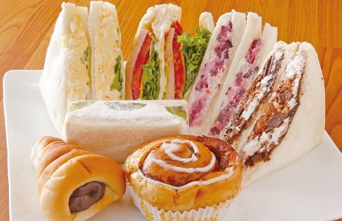 色とりどりなサンドイッチやパンなど豊富な品ぞろえ。
