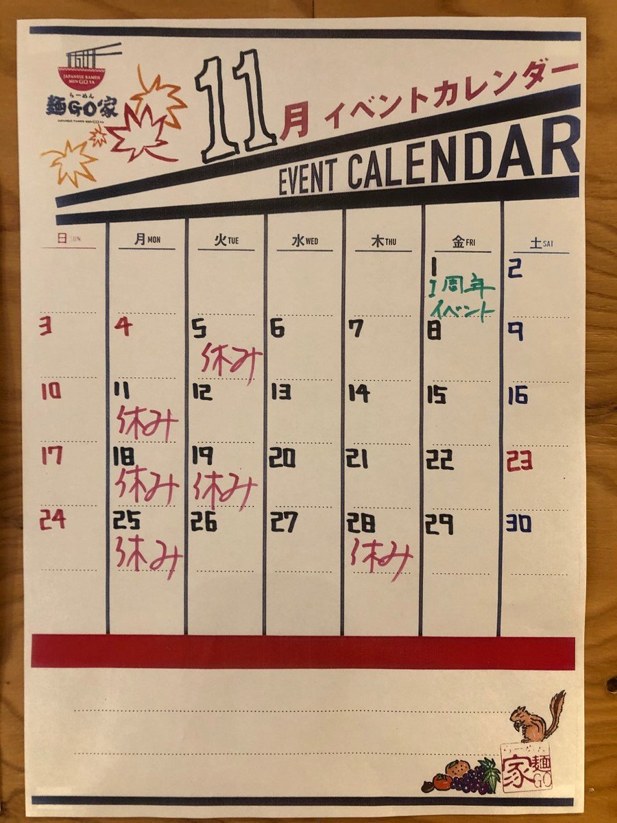 『今週の予定』11日(火)は休みになります。10日、12日、13日、14日は、15時閉店になります。※本日9日(日)は、都合により、閉店させ... [らーめん・麺GO家(めんごや) 白石店【Twitter】]