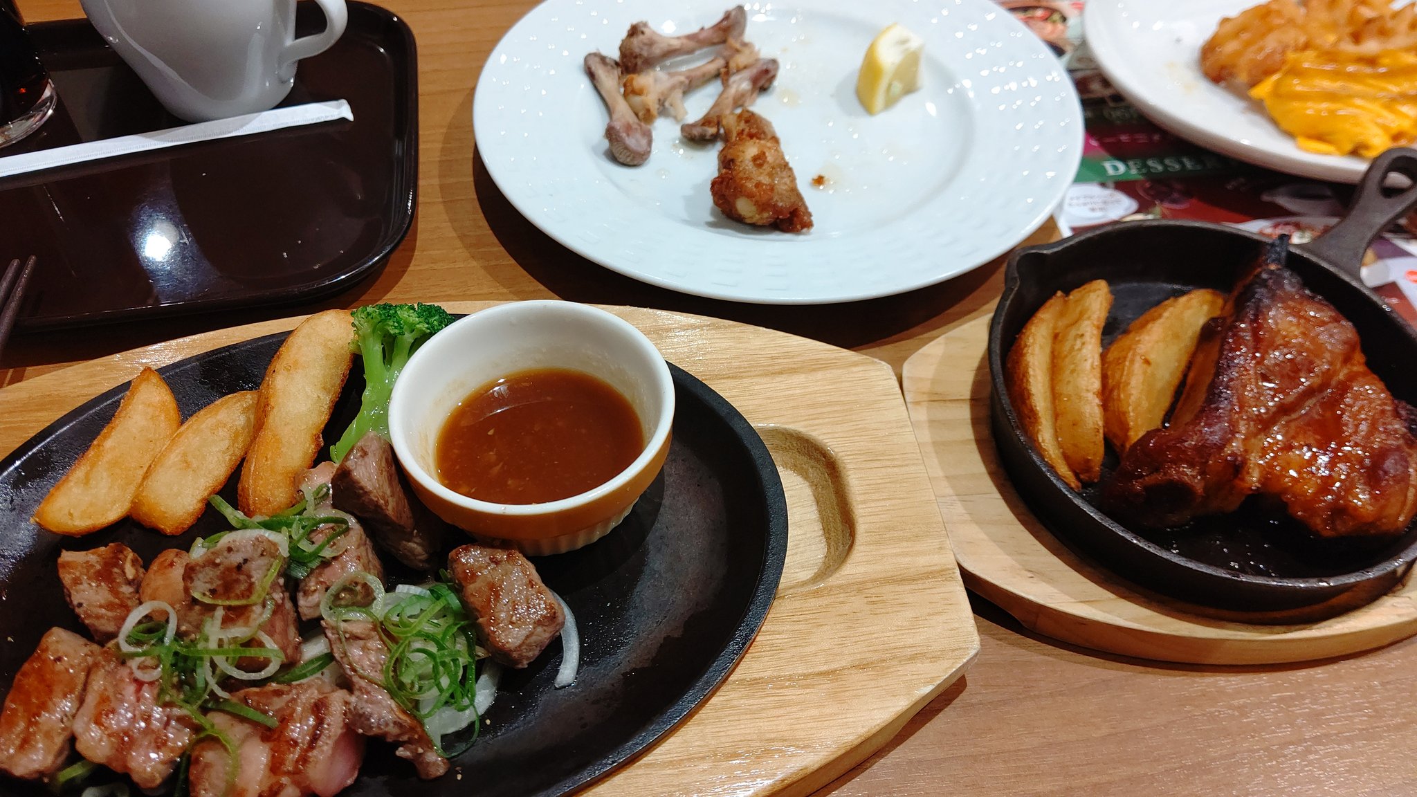 今日の晩御飯は、 チキン、 ポーク、 ビーフの 豪華?3種盛り(笑) pic.twitter.com/003kOSz3O3