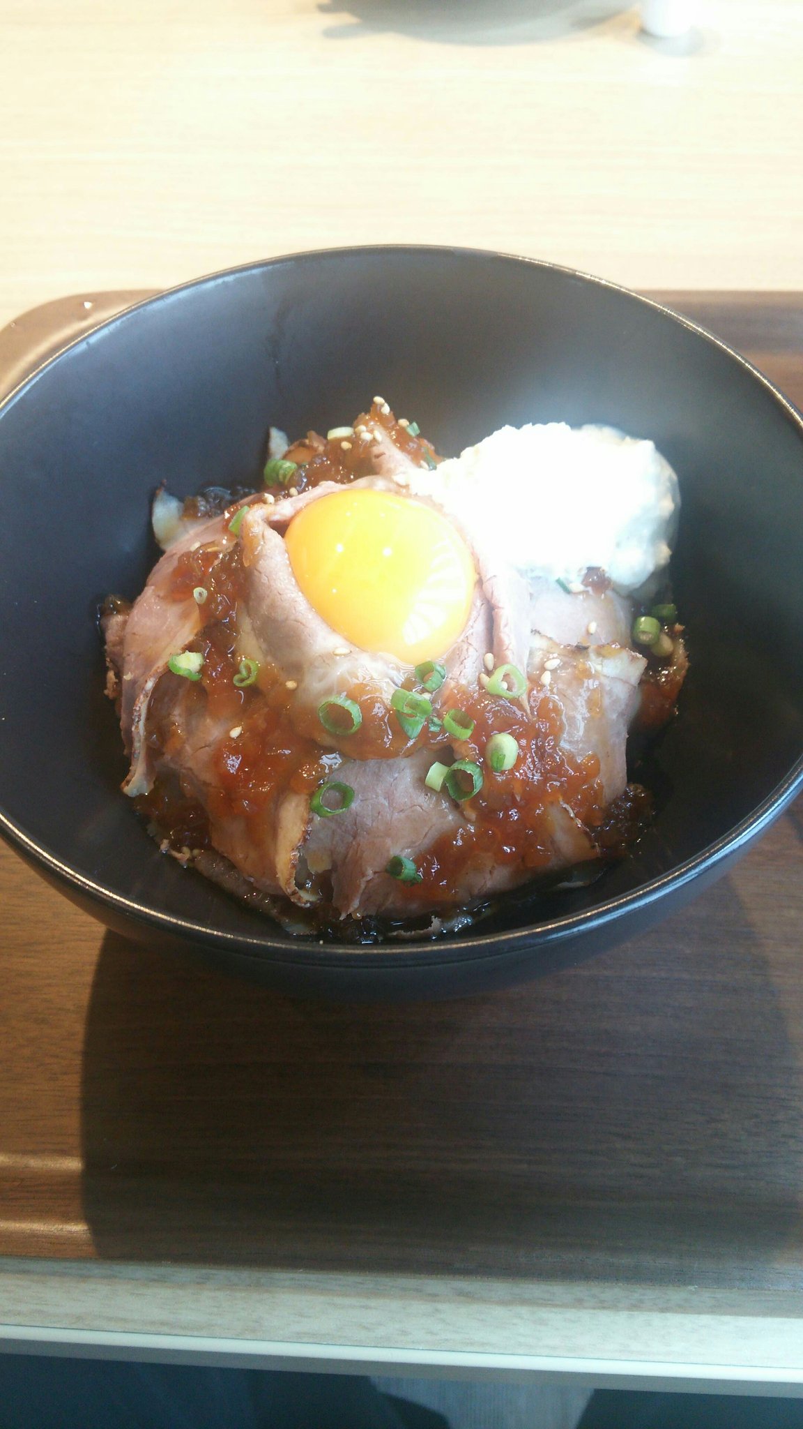 お洒落な、ローストビーフ丼なんぞ食べる(笑) pic.twitter.com/jjEnanqYuj