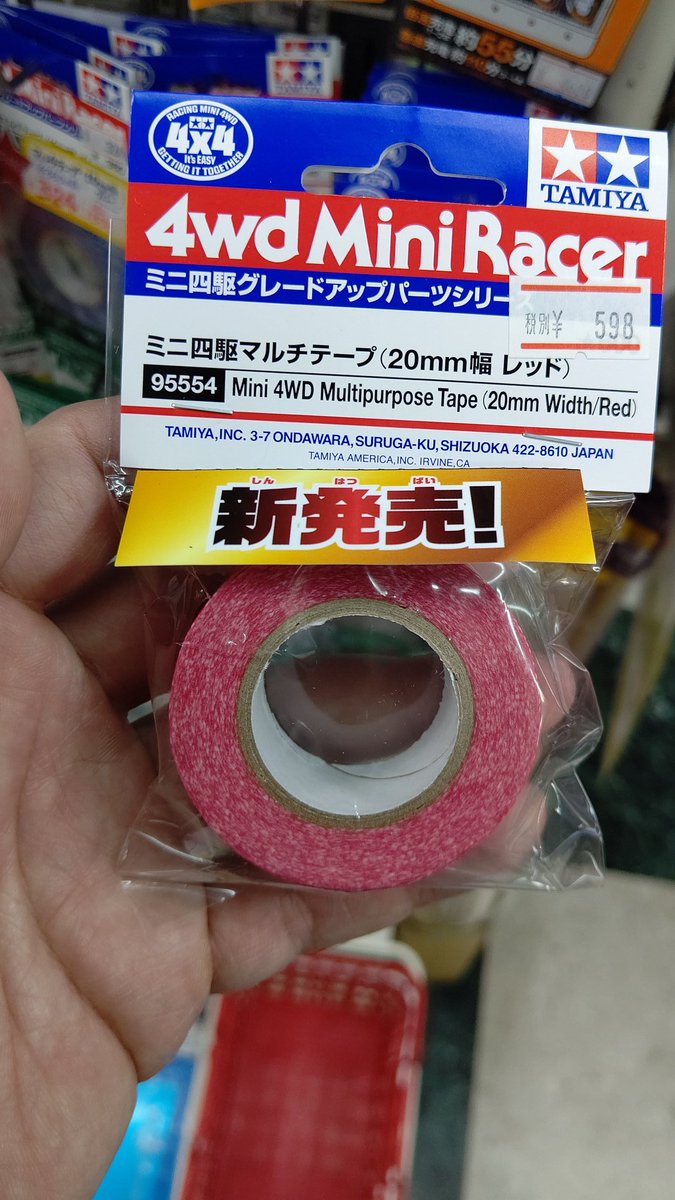 ミニ四駆マルチテープ20ミリ赤!入荷しました!太いですね。親近感湧きます(笑) [おもちゃの平野【Twitter】]