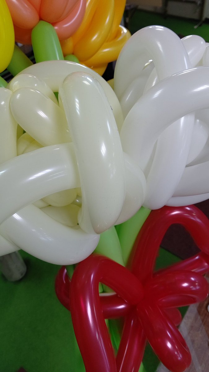 大きいチューリップの花束を作りました🌷大きすぎて抱えて撮ろうとしても全体が入らない(笑)#バルーンアート #チューリップ #おも... [おもちゃの平野【Twitter】] | おもちゃの平野