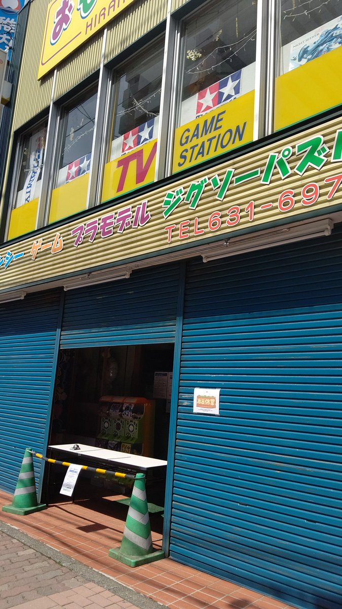 土日は休業ということでこのスタイルになっております。いやぁ天気いいなぁ☀#おもちゃの平野 #土日休業中 [おもちゃの平野【Twitter】] | おもちゃの平野