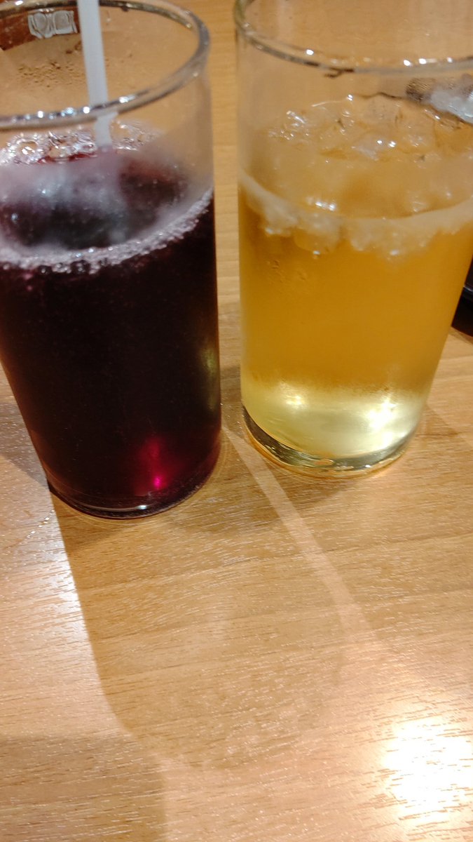 白と赤、同時飲み!冷たい方がいいので氷いれる。旨いなぁ [おもちゃの平野【Twitter】]