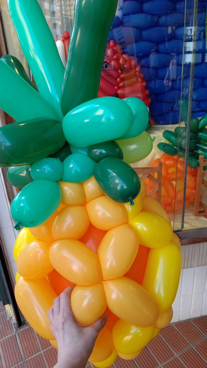 大きいパイナップル🍍を作った!ん?遠近法・・・あ、やっぱり大きかった!#バルーンアート #パイナップル #おもちゃの平野 [おもちゃの平野【Twitter】] | おもちゃの平野