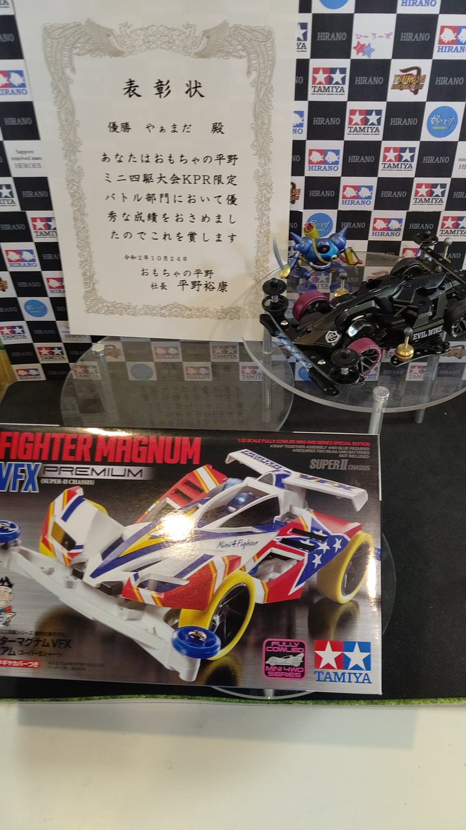 おもちゃの平野ミニ四駆大会、KPR部門優勝は、やぁまだ君です!波瀾だらけの予選を高得点で勝ち抜き、見事な優勝です!おめでと... [おもちゃの平野【Twitter】] | おもちゃの平野