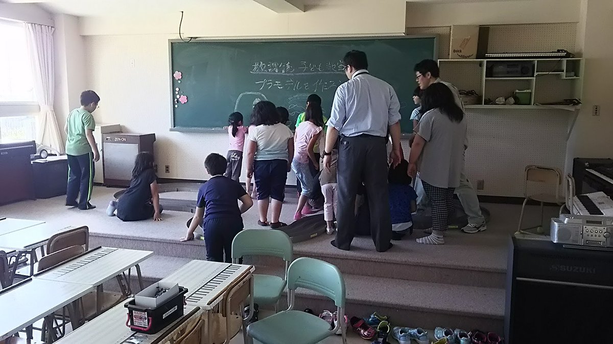 たぶん初回のミニ四駆教室かなぁ・・・この時は1グループに1台でみんなで分業で作ったんですよ。