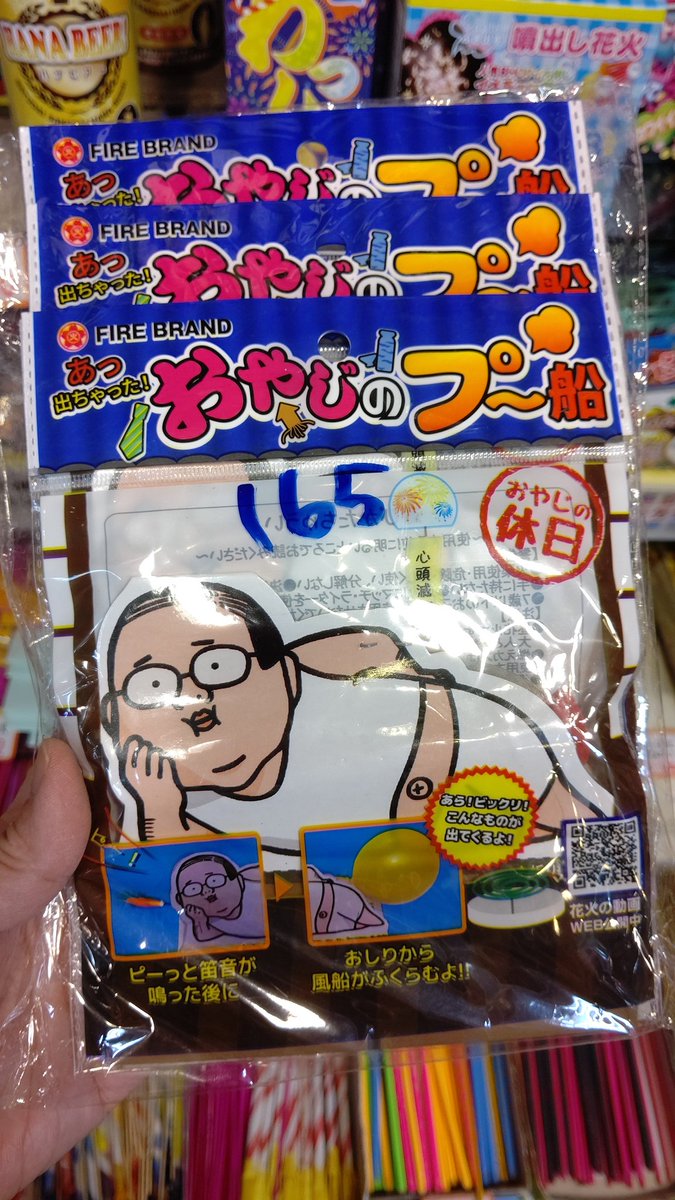 昨年、テレビで紹介されて品切れになってしまった「おやじのプー船」今年もご用意してますのでぜひ🎇🎆#花火 #おもちゃの平野 https:/... [おもちゃの平野【Twitter】]