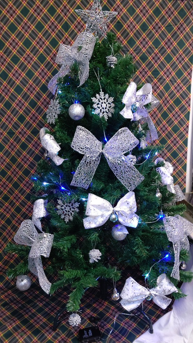 第二号!シルバー&ホワイトでLEDに少し青が入ってます。色数は押えて大人っぽく、でもリボンいっぱいで可愛く🎀#クリスマスツリー #... [おもちゃの平野【Twitter】] | おもちゃの平野