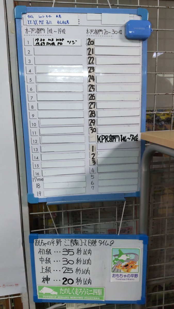 おもちゃの平野ミニ四駆コース、目標タイム設定しました!既に神様達成してますね!次は・・・。 [おもちゃの平野【Twitter】]