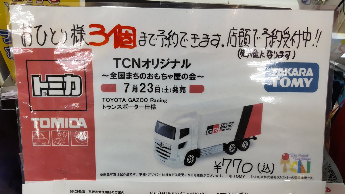 おもちゃの平野ではTCNオリジナルトヨタGAZOOレーシングトランスポータートミカの店頭予約を受付中です!限定数量になり次第受付終... [おもちゃの平野【Twitter】]