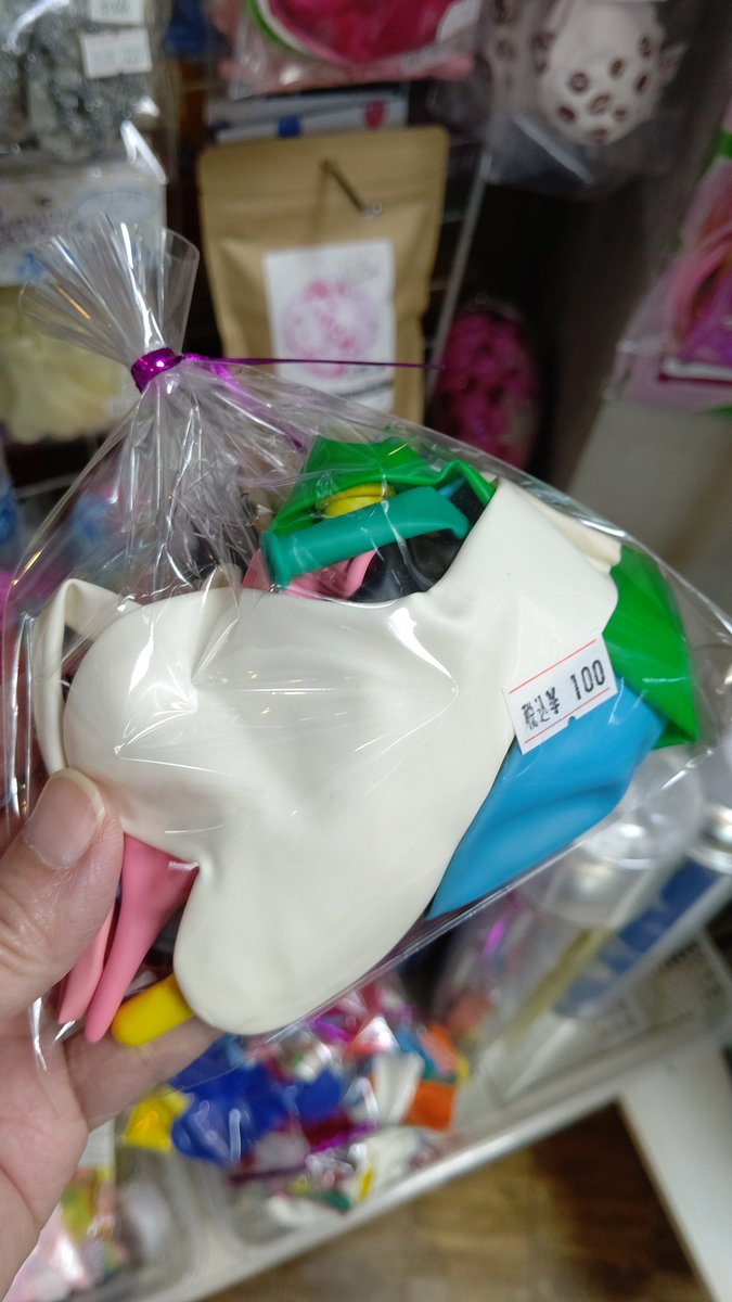 ワケあり風船の詰め合わせ🎈🎈キズがあったりちょっと古かったりしますけど、柄アリの風船も細長いのも入ってて100円分はしっかり遊べ... [おもちゃの平野【Twitter】]