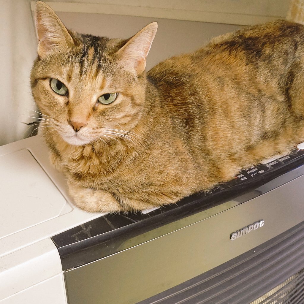 肌寒いのでうちのストーブLove💕猫を置いておきますね〜